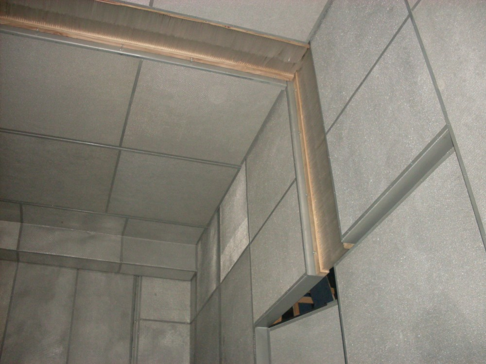 面材夾網結構,可以使音頻穿透到中間的鋁纖維絲,而纖維的不規則孔洞會破壞音頻線條,並且利用鋁箔產生破壞性的音頻震動效果,以達到優異的吸音效能~
