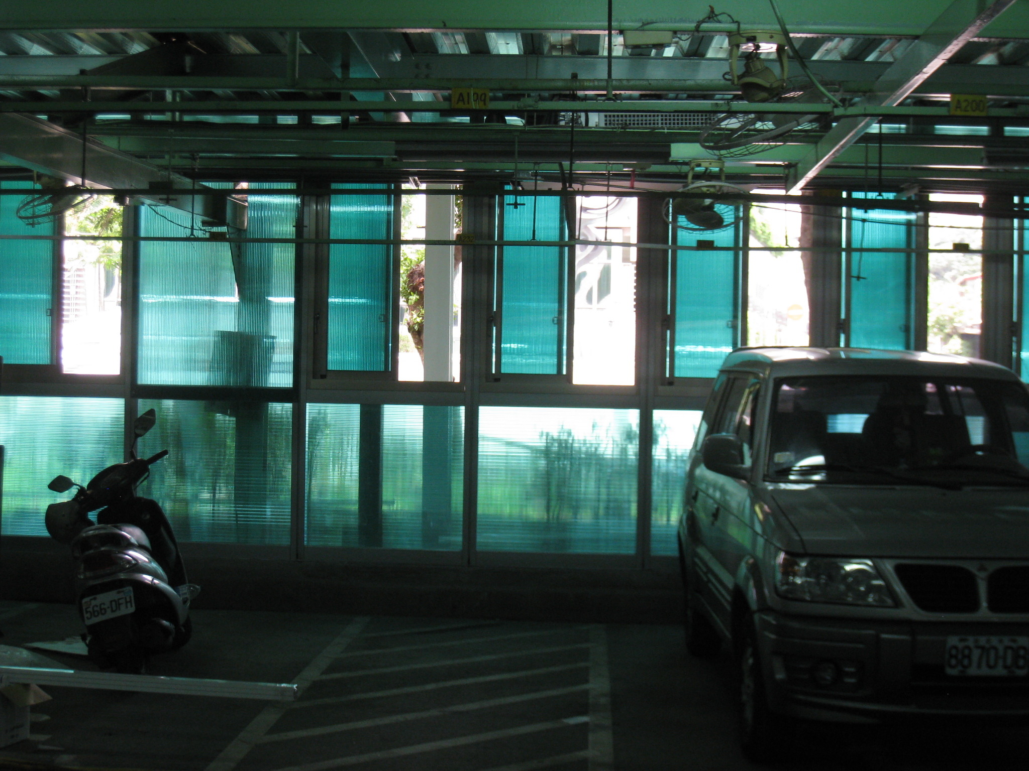 使用以色列POLYGAL 中空板,顏色多樣配合玉市形象要求,隔熱,採光及輕巧易施工.